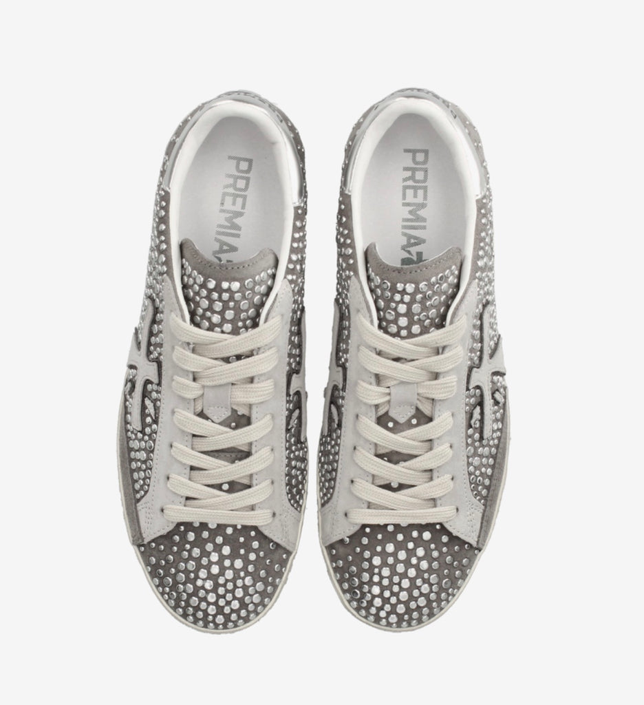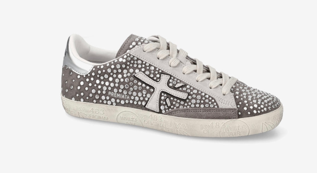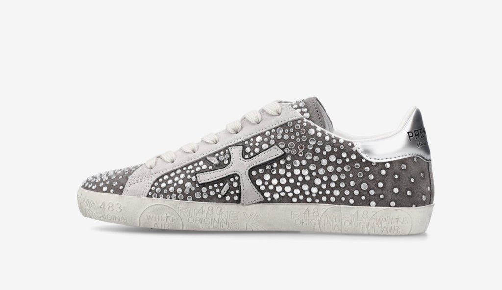Deportivas de firma Premiata modelo STEVEND de mujer en color gris y tachuelas .el modelos STEVEND llega este año totalmente renovado y vi mucha fuerza