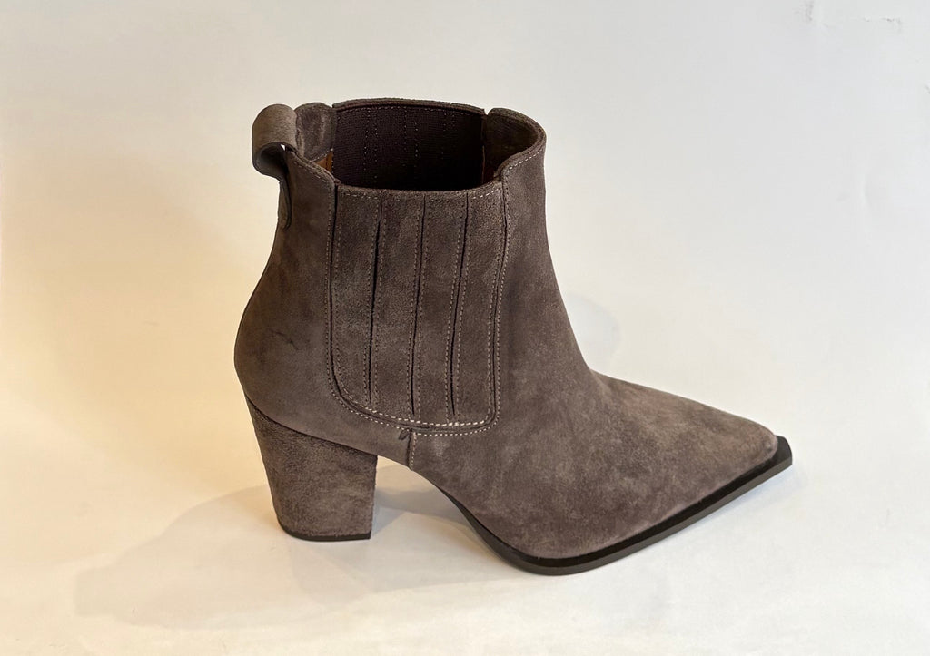 Botin tipo campero de vestir de la firma Italiana Albano .Botin color gris con un tacón de 8sm